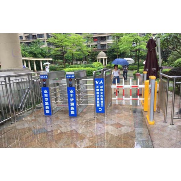 1) The full-high turnstile is designed to provide unsupervised access control for office or building. The impenetrable construction eliminates any unauthorized access to restricted areas. To gain authorized passage through the turnstile, the user must present a valid card for the access control system. Upon presentation of the valid card. the turnstile will unlock and allow the user to pass through the direction requested. The turnstile can also work with push button, fingerprint and face recognition access control system.